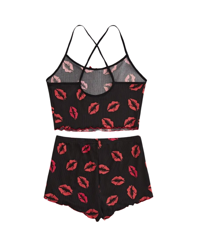 2 Piece Red Lips Ribbed PJ set